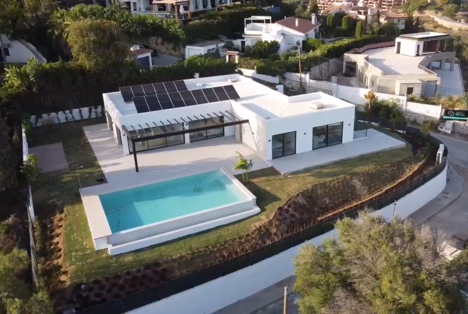 In order to meet the latest standards in energy production and sustainability, a photovoltaic system and heat pumps have been installed, so that the villa has an Energy Performance Certificate A. The newly created infinity pool has been moved from the old position in front of the villa to allow a view of the Mediterranean Sea, Gibraltar, and the African coast. Furthermore, the garden has been redesigned to create more privacy.
